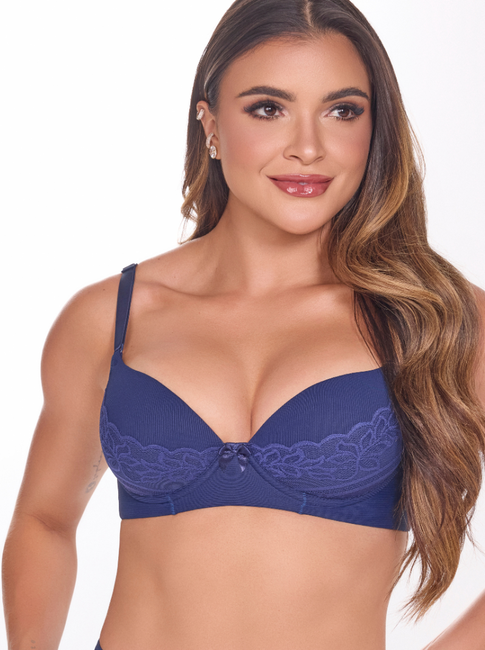 O sutiã possui uma modelagem que encaixa perfeitamente os seios, valorizando o colo. Os arcos são abertos para não espertar os seios. As laterais possuem tecido duplo e garantem maior sustentação.